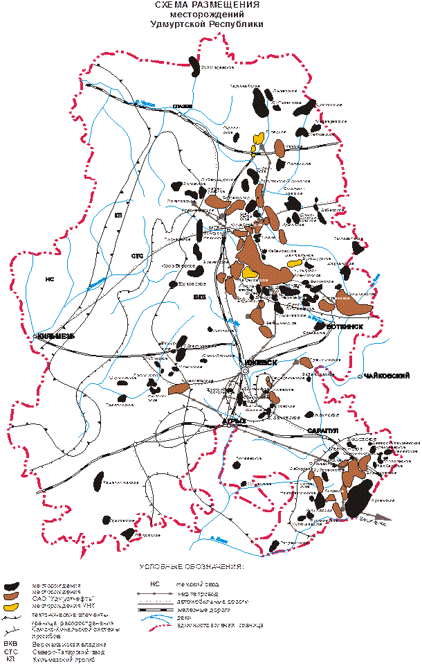 Рис.15. Карта расположения месторождений нефти на территории Удмуртской Республики