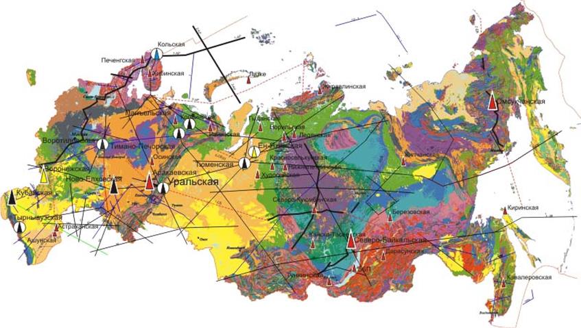 Рис. 36. Карта расположения глубоких и сверхглубоких скважин на территории России