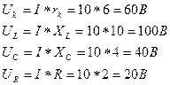 Геометрическая сумма векторов Uk, UR, UL, UC представляет полное напряжение U. Так как длина вектора равна 5 см, то величина напряжения составит