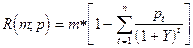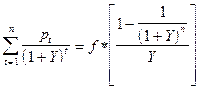 X - стоимость собственности; q - чистый операционный доход; p t - уплата за t -ый год в счет погашения единичного кредита; k - ставка капитализации; Y - ставка дисконтирования; i - годовая ставка процента по кредиту; d - ежегодный рост стоимости собственности; n - предполагаемый срок владения собственностью; m - коэффициент ипотечной задолженности. Тогда стоимость собственности (X):