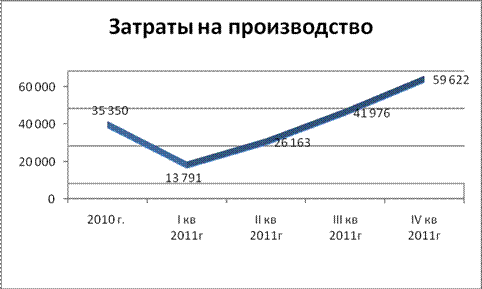Производство камвольных тканей и полушерстяной пряжи является материалоемким производством. Доля материальных затрат в издержках производства за 2011 году составила 46, 8% и увеличилась по сравнению с 2010 годом на 4, 7 процентных. Удельный вес живого труда в себестоимости продукции в 2011 году составил 31, 5%. Полные издержки на производство продукции в основном представлены переменными затратами, доля которых в 2011 году составила 69, 5%. Затраты на производство продукции ОАО «Камволь» в 2011 году выросли по сравнению с 2010 годом на 17% и составили 59 622 миллионов рублей (рисунок 3.1). В расчете на 100 рублей товарной продукции затраты на производство составили 115 рублей против 114 рублей в 2010 году. Снижение физического объема производства вызвало рост доли условно-постоянных затрат в издержках производства, и по итогам 2011 года эта величина составила 22, 6% (рост на 1, 1 процентных пункта).