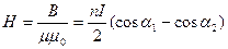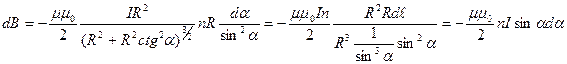 Напряженность магнитного поля в точке А: Из рис. находим: Таким образом, магнитная индукция зависит от положения точки А на оси соленоида. Она максимальна в середине соленоида: · Если L> > R, то соленоид можно считать бесконечно длинным, тогда · На одном из концов длинного соленоида