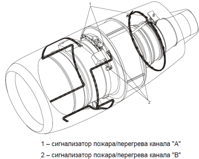 Система сигнализации о пожаре в отсеках гондол двигателей и отсеке ВСУ.
