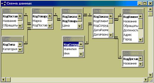Структура связей между таблицами называется схемой данных.
