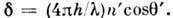 при постоянстве h и разность фаз определяется наклоном лучей относительно пластины: при равном наклоне p разность фаз постоянна. Чтобы лучи AD и СЕ интерферировали, необходимо их совмещение, что достигается для параллельных лучей в бесконечности. Наблюдаются они при аккомодации глаз на бесконечность или с помощью линзы, в фокусе к-рой помещают экран. Разность фаз не связана с положением источника света: лучи, испущенные соседней точкой источника и отражённые под тем же углом будут иметь ту же разность фаз, а при проецировании на экран попадут в ту же точку. Поэтому при использовании протяжённого источника полосы оказываются столь же отчётливыми, как и с точечным источником. Если оптич. ось пучка света нормальна к пластинке ( = 0), то П. р. н. приобретают вид концентрич. колец, что используется в частности в интерферометре Фабри - Перо, полосы на выходе к-рого - пример П. р. н. Благодаря большому отношению у интерферометра Фабри - Перо небольшие изменения ведут к большому изменению , что позволяет использовать интерферометр Фабри - Перо как спектральный прибор высокой разрешающей силы либо как частотный фильтр в открытом резонаторе.