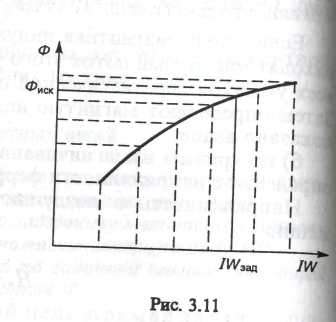 Обратная задача расчета неоднородной неразветвленной магнитной цепи — определение магнитного потока по заданной намагничивающей силе, может быть решена методом последовательных приближений. Для этого задаются несколькими значениями магнитного потока и для каждого из них решают прямую задачу расчета магнитной цепи. По результатам расчетов намагничивающих сил для разных магнитных потоков строят кривую зависимости