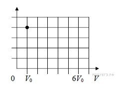 С1. В цилиндре под поршнем при комнатной температуре t0 долгое время находится только вода и её пар. Масса жидкости в два раза больше массы пара. Первоначальное состояние системы показано точкой на pV -диаграмме. Медленно перемещая поршень, объём V под поршнем изотермически увеличивают от V0 до 6V0. Постройте график зависимости давления p в цилиндре от объёма V на отрезке от V0 до 6V0. Укажите, какими закономерностями Вы при этом воспользовались.