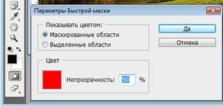 Параметры быстрой маски можно посмотреть и задать. Два раза щёлкаем по пиктограмме быстрая маска появляется диалоговое окно (Параметры быстрой маски) рис 1.