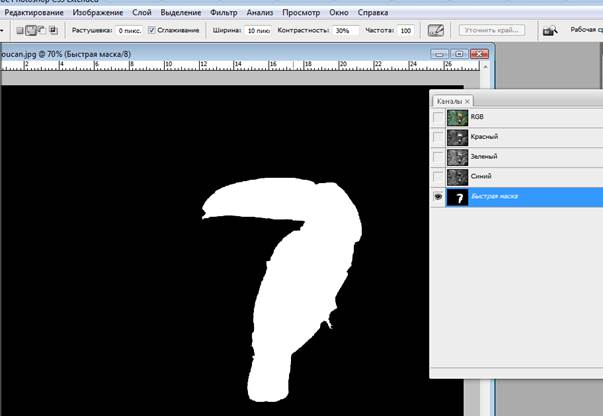 рис 4 Канал быстрой маски в палитре каналы На палитре каналы щёлкаем на пиктограмме глаза напротив составного изображения RGB. Изображение исчезнет, в окне редактирования видна только маска (рис. 5).