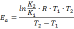 Запишем соотношение констант скоростей при конечной и начальной температурах: