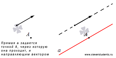 В-третьих, прямую можно задать, если указать точку, через которую она проходит, и ее направляющий вектор. Если прямая линия задана в прямоугольной системе координат таким способом, то легко составить ее каноническое уравнение прямой на плоскости и параметрические уравнения прямой на плоскости.