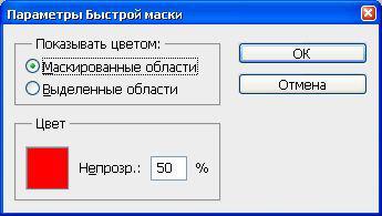 • во-первых, цвет волос девушки местами сливается с цветом фона, а раз фон неоднороден, то Волшебная палочка бесполезна; • во-вторых, обводить каждый волосик прически с помощью инструментов Лассо или Перо занятие очень трудоемкое. Для подобных случаев в Adobe Photoshop существует более удобный способ выделения - выделение с помощью инструмента Quick Mask (Быстрая маска). Итак, приступим к выполнению примера. Загрузите изображение, которое мы будем использовать для работы. Нажмите дважды на кнопку Edit in Quick Mask Mode (Редактирование в режиме Быстрая маска), расположенную внизу панели инструментов для вызова окна диалога Quick Mask Options (Параметры Быстрой маски), предназначенного для установки опций режима быстрой маски (рис. 3.22).