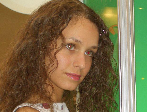 Рис. 4.18. Фотоизображение с дефектом " красные глаза" Активируйте кнопку Red Eye Tool и с помощью рамки, создаваемой этим инструментом поочередно обведите каждый глаз девушки - дефект " красные глаза" исчезнет. Атрибуты настройки этого инструмента имеют только два параметра: ползунок Pupil Size (Размер зрачка) и ползунок Darken Amount (Сила затемнения) - рис. 4.19. Их значения следует подбирать экспериментально.
