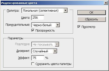 если намереваетесь загружать файл в Сеть. Эта опция ограничивает набор цветов изображения тем множеством, которое доступно в большинстве Web-браузеров;