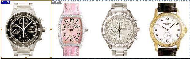 • откройте изображение, которое вы собираетесь разделить на ломтики; • включите режим отображения кусочков нажатием кнопки Slice Tool (Раскройка) на палитре инструментов. Даже если вы не трогали этим инструментом изображение, то все равно появляется специальная метка о том, что теперь изображение разрезано на один " кусок" Об этом говорит окаймляющая его рамка с порядковым номером фрагмента 01 и специальной пиктограммой фрагмента; • нажмите на левую кнопку мыши и инструментом Slice (Раскройка) обведите, как рамкой, левые часы, затем отпустите кнопку мыши. Вы определили фрагмент, который хотели бы иметь в виде отдельного изображения (и файла) - рис. 7.4;