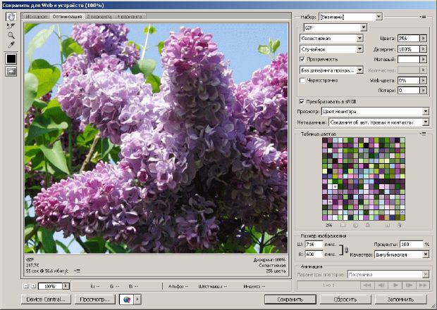 Рис. 7.11. Окно Save for Web & Devises (Сохранить для веб и девайсов), вкладка Optimized (Оптимизировать)