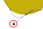 Вы заметили, что от черной точки отходят два усика - это направляющие. Если взяться за кончик усика и потянуть его например вниз, мы изменим контур вот таким образом: