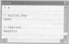 Кнопка Immediate Window (клавиши Ctrl+G) отображает окно непосредственных вычислений (рис. 12.8). В этом окне можно проверить работу функций и состояние переменных — как в режиме конструирования, так и во время отладки.