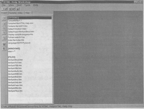Как вы уже знаете, справочная система Visual Basic отличается от рассмотренной нами справочной системы формата Win Help. Теперь в Visual Basic используется справочная система в формате HTML, которая также была принята и для электронной документации Microsoft Developers Network. Конечно, мы не будем отставать от времени и посмотрим, как работать со справкой в формате HTML. Хотя технические подробности языка HTML выходят за рамки данной книги, вы можете воспользоваться программой HTML Help Workshop (рис. 13.11) и преобразовать готовый Winhelp-проект в формат HTML. Как видно из рисунка, HTML Help Workshop внешне похож на своего предшественника. Не вдаваясь в тонкости передовых справочных технологий, мы просто переведем справочный файл из предыдущего примера в HTML Но сначала HTML Help Workshop нужно установить. Программа установки называется htmlhelp.exe и находится в каталоге \HTMLHelp компакт-диска Visual Basic. Дважды щелкните на этом файле в Проводнике Windows, чтобы начать процесс установки. В нем нет ничего сложного, поэтому я не стану приводить подробного описания. После установки HTML Help Workshop рассмотрите следующие примеры — они помогут вам понять, как преобразовать справочный файл в формат HTML: 1. Запустите HTML Help Workshop. 2. Выполните команду File > New в меню Help Workshop. 3. Выберите Project в диалоговом окне и нажмите кнопку ОК. 4. На экране появляется окно New Project Wizard (рис. 13.12). Проследите за тем, что флажок Convert Win Help project установлен, и нажмите кнопку Next.
