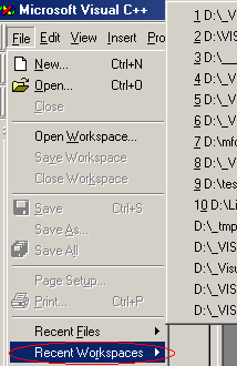 Из этих двух файлов предпочтительнее открывать файл dsw. Если же вы открываете проект из Visual Studio, то заходите в меню File и далее Recent Workspaces (не перепутайте и не выберите Recent Files):