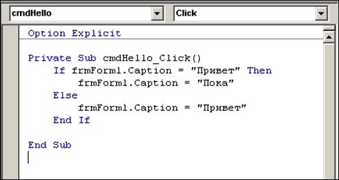 If frmForm1.Caption = «Привіт» Then frmForm1.Caption = «Доки» Else frmForm1.Caption = «Привіт» End If