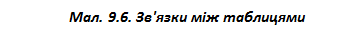 На мал. 9.6 показано вікно майстра з вкладкою Links, на якій наочно відображуються зв'язки між таблицями.