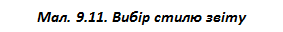 23. У полі Title введіть текст Мій перший звіт. 24. У списку Style виділите рядок Таblе (мал. 9.11). На цій вкладці вибирається стиль створюваного звіту. В результаті створений звіт виглядатиме як стандартна таблиця.