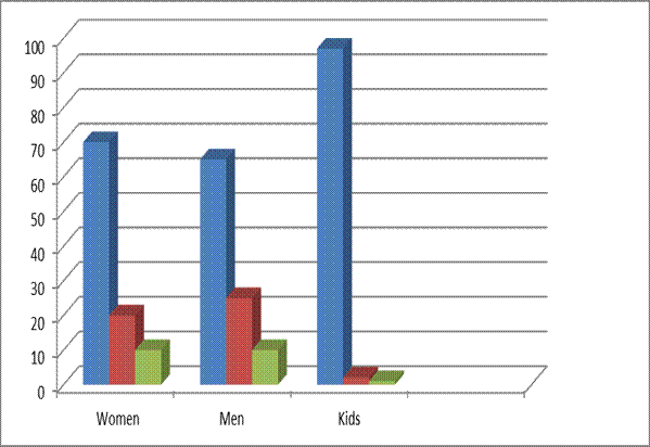 Impulse buying is purchases made on items a consumer had not planned on buying before leaving the house or navigating to a web page. Impulse purchases can have a hypnotic effect on a buyer due to the dopamine released in the brain when these purchases are made; the dopamine " high" is similar to using drugs or having sex. According to " Redbook" magazine, nearly half of retail and online purchases are impulsive. Not having a list or a clear idea of what you need, can lead to impulse buying. When consumers are unsure of what to buy, they are more prone to being sucked in by attractive packaging, optimum product placement in the store or prices that seem better than they are. According to the financial website " One Mint" items presented in a shiny, attention-grabbing manner end up in a consumer's cart before a standard version of the same product. Likewise, if items are placed at eye level or at the end of an aisle, people are more likely to purchase them. They will also be more quickly drawn to items that are advertised as two for $1, rather than 50 cents, even though there is no difference in price. Grocery stores often place limits on how many sale items you can buy, another ploy to convince consumers to buy the maximum number of items even if they don't really need that many. Consumers, in general, are influenced by characteristics of the situation, condition surrounding their shopping trip. Major situational influences include the physical surroundings, social surroundings, time, task, monetary conditions, and momentary moods. The physical surroundings that influence buying behavior are observable features that include location of the store, merchandise display, store design, and noise level of the store. The social surroundings of a situation are other people, their characteristics and roles, and the way they interact. The moods and condition as well as the time, task, and monetary condition of a consumer time of purchase influence their buying decision. Although useful in explaining planned purchase situations, the model does not lend itself to explaining the process of impulse buying. The buying behavior is classified as planned or unplanned. According to this classification, planned buying behavior involves a time-consuming; whereas unplanned buying refers to all purchases made without such advance planning including impulse buying, which is distinguished by the relatively speedy decision-making encouraged by stimulating. Impulse purchases are not the result of a specific search to satisfy a particular requirement. Purchases are incidental to this speedy process although they may provide some kind of enjoyment. This is are most likely happen a cause of a good mood, because when people have a good mood they want to reward yourself and buy more. It's all because of emotions. Impulse buying research: According to the results of a recent research in hypermarket Westfield which is located in London, impulse buying accounts for 60-70% in 2012. It is interesting to point out, that there is a tendency for women, men and children to be differently involved in impulse buying. When we analyze women, 70% of women make unplanned shopping decision; 20% know what they want to buy, but then change their decision; 10% of women make planned shopping decision. Looking at men, 65% of men make impulse buying; 25% know what they want, but change their decision in store; 10% know what they want and buy it. Speaking of children (1-12 years old), 97% make impulse buying; 2% know what they want, but then change their mind, 1% buy what they planned (see Сhart 1 below).