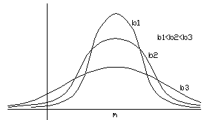 Рисунок 10. В зависимости от величины параметров кривая плотности вероятности имеет различный вид и поэтому правильнее было бы говорить о семействе нормальных законов распределения (на рис. 10 показана зависимость формы кривой распределения от величины s при фиксированном m). Выясним теперь вероятностный смысл параметров функции распределения. Для этого вычислим математическое ожидание и дисперсию случайной величины распределенной нормально. Введем новую переменную Тогда Первый интеграл равен нулю, так как под знаком интеграла стоит нечетная функция, а пределы интегрирования симметричны. Второй интеграл известен как интеграл Пуассона Поэтому M(x)=m Если сделать ту же замену переменных и проделать необходимые преобразования, то можно убедиться, что Итак, параметры нормального закона распределения m и s равны соответственно математическому ожиданию и среднему квадратическому отклонению случайной величины распределенной по этому закону. Так как параметры однозначно определяют нормальный закон распределения, то для нормального закона часто используют обозначение Получим две важные формулы для нахождения вероятности. 1)Пусть случайная величина имеет закон распределения На основании свойств функции плотности вероятности можно записать Сделаем замену переменных Введем в рассмотрение функцию (функцию Лапласа)
