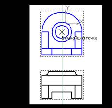 Рисунок 12 Удалите вспомогательную вертикальную прямую. Для этого выделите ее щелчком мыши и нажмите клавишу < Delete> на клавиатуре. Перемещение видов Установите курсор на пунктирную рамку вида Сверху. Пунктирная рамка – это признак ассоциативного вида, то есть вида, связанного с 3D-моделью. Она не выводится на печать и является средством управления видом. Нажмите левую клавишу мыши и, не отпуская клавишу, перетащите вид вниз на свободное место (рисунок 13). Так как виды находятся в проекционной связи, этот вид можно перемещать только в вертикальном направлении.