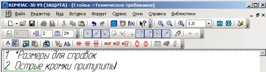 Рисунок 31 Оформить технические требования Выполнить команду Вставка – Технические требования – Ввод и ввести технические требования (рисунок 32).