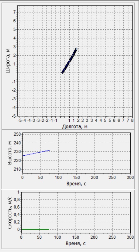 4. Графики изменения основных навигационных данных во времени: широты/долготы © ООО КБ «ГеоСтар навигация» 2012-07-31 16 (отображается отклонение координат приемника относительно первой точки), высоты, плановой скорости (Рис. 15).