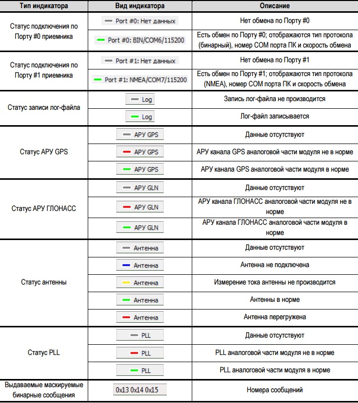 Рисунок 14. Панель индикаторов режимов работы приемника Панель представляет собой набор из шести индикаторов, назначение и возможные состояния которых описаны в Таблице 2. Таблица 5.Описание индикаторов режимов работы приемника