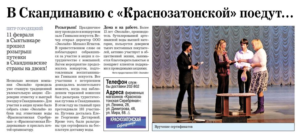 Да, конечно. Была разыграна 1 путевка в Сыктывкаре и в Ухте. ⇐ ПредыдущаяСтр 5 из 5