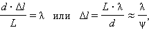 При смещении вдоль координатной оси y на расстояние, равное ширине интерференционной полосы Δ l, т. е. при смещении из одного интерференционного максимума в соседний, разность хода Δ изменяется на одну длину волны λ. Следовательно,