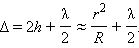 где r – смещение от оси симметрии. При написании выражения для разности хода следует также учесть, что волны 1 и 2 отражаются при разных условиях. Первая волна отражается от границы стекло–воздух, а вторая – от границы воздух–стекло. Во втором случае происходит изменение фазы колебаний отраженной волны на π, что эквивалентно увеличению разности хода на λ / 2. Поэтому