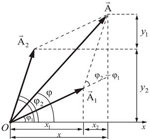 - амплитуда результирующего колебания при сложении колебаний направленных вдоль одной прямой