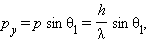 где p – модуль полного импульса электрона, равный, согласно де Бройлю, h / λ. Величина p при прохождении электрона через щель не меняется, т. к. остается неизменной длина волны λ. Из этих соотношений следует
