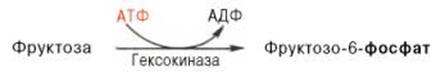 Установлено, что фруктоза, присутствующая в свободном виде во многих фруктах и образующаяся в тонкой кишке из сахарозы, всасываясь в тканях, может подвергаться фосфорилированию во фруктозо-6-фосфат при участии фермента гексокиназы и АТФ: