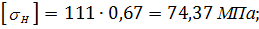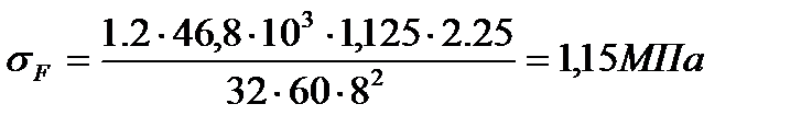 Коэффициент формы зуба по таблице 4.5 / / YF=2.06. Напряжение изгиба: где b2 - ширина венца червячного колеса, мм; m - модуль, мм. (2.26)