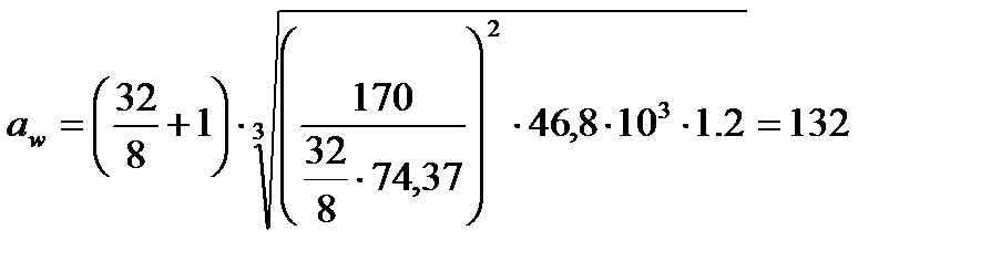 Принимаем предварительно коэффициент диаметра червяка q=8 и коэффициент нагрузки К=1.2 Определяем межосевое расстояние из условий контактной прочности