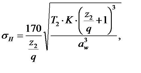 (2.24) где z2 - число зубьев червячного колеса; q - коэффициент диаметра червяка; Т2 - вращающий момент на ведомом валу, Н * мм; К - коэффициент нагрузки; aw - межосевое расстояние, мм.