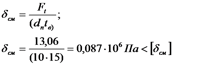 По табл. П59/ 12 / (ГОСТ 21424-78) выбираем муфту, для которой допускаемый расчетный момент Размеры выбранной муфты следующие по табл. П59/ 12 /: Проверяем резиновые втулки на смятие поверхностей их соприкасание с пальцами:
