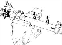 | Проверьте детали рулевой передачи на отсутствие трещин или повреждений, а также на неравномерность износа зубьев рейки. При необходимости, замените изношенные детали.