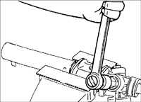 | Ослабьте контргайку и отверните наконечник рулевой тяги с рулевой тяги.