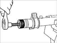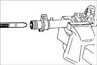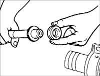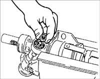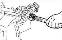 | Вставьте специальный инструмент со стороны вала шестерни так, чтобы он вошел в контакт с распорной втулкой.