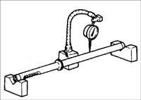 | Установите зубчатую рейку на V-образных блоках и индикатором часового типа измерьте прогиб рейки. Если прогиб превышает допустимое значение, замените рейку.