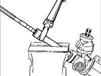 | Закрепите картер рулевой передачи в тисках так, чтобы скользящий упор находился сверху.