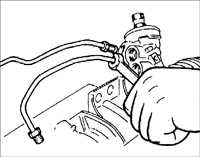 | Выверните два болта и гайки и снимите кронштейн маслопровода, затем отделите четыре маслопровода от рулевой передачи.