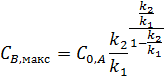 т.е. время достижения максимума зависит от соотношения констант скоростей k 2 и k 1, но и от их абсолютных значений.